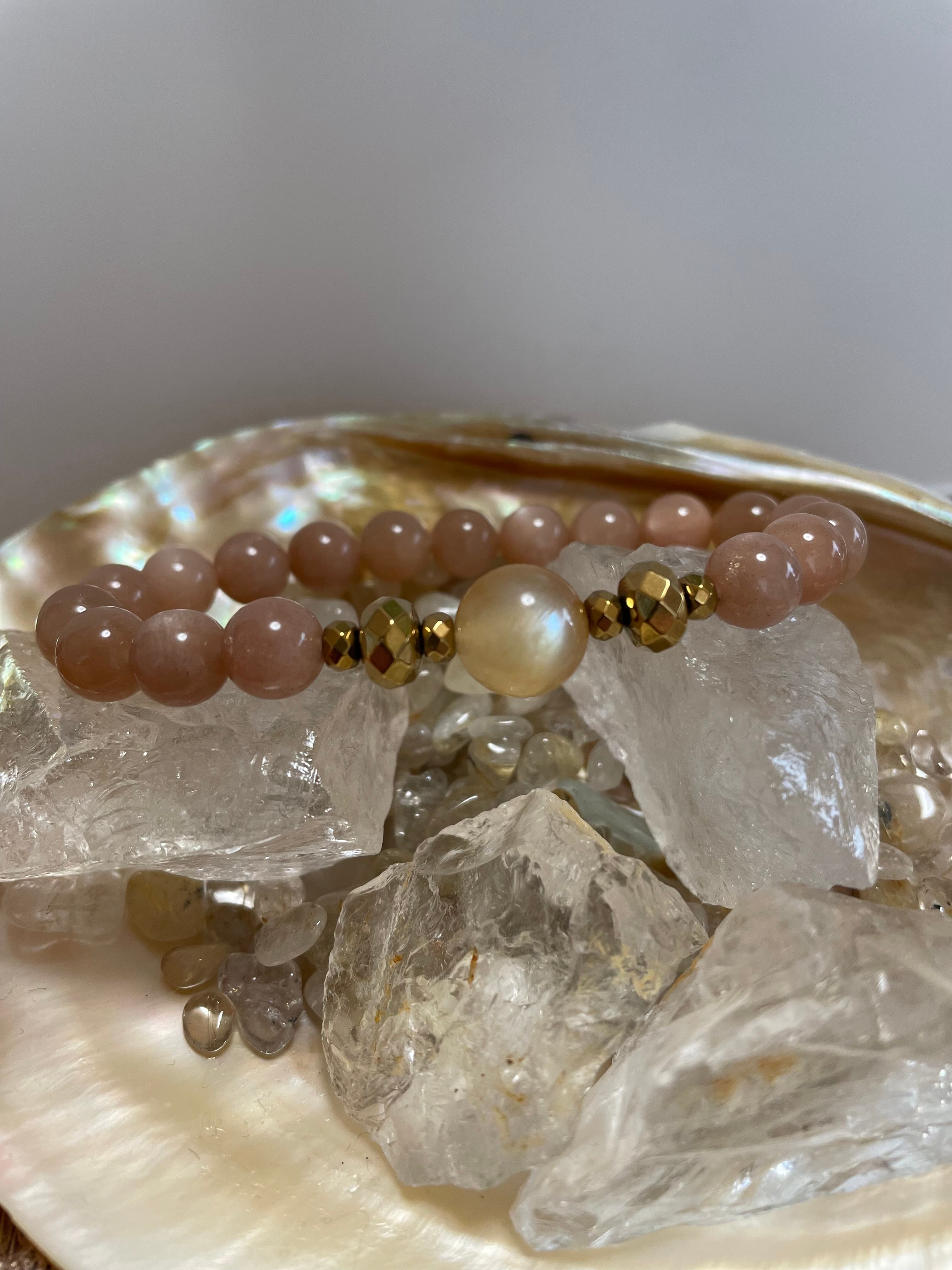 B24【オレンジムーンストーン★ヘマタイト】